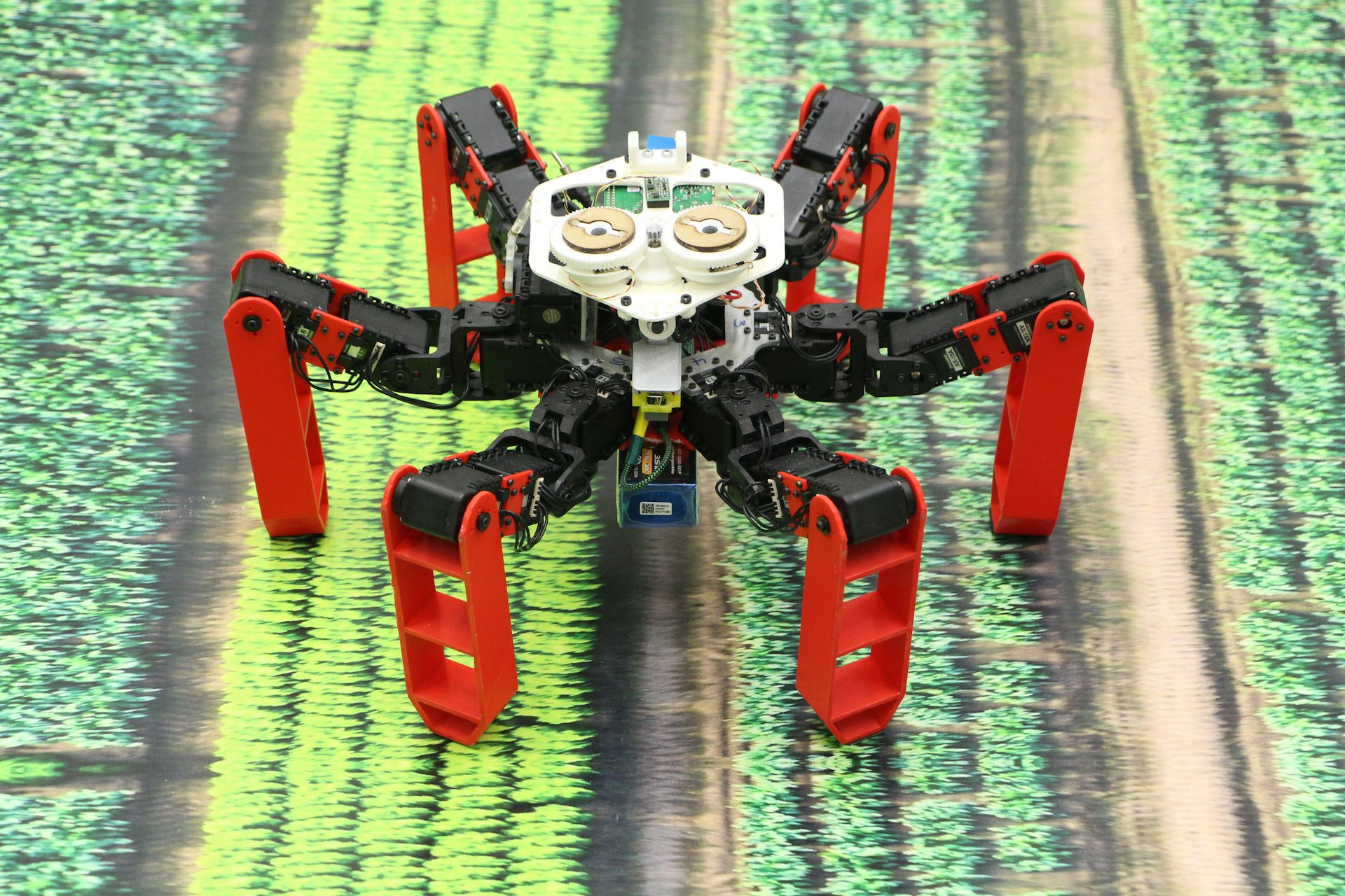 La robotique hexapode bénéficie d’une histoire en recherche et développement vieille de 50 ans. En dépit de notre connaissance accrue des procédés de locomotion, aucun projet de navigation autonome ne semble avoir vu le jour avec ces robots. Nous avons donc conçu un robot hexapode imprimé en 3D en s’inspirant directement de la morphologie de la fourmi pour se déplacer.